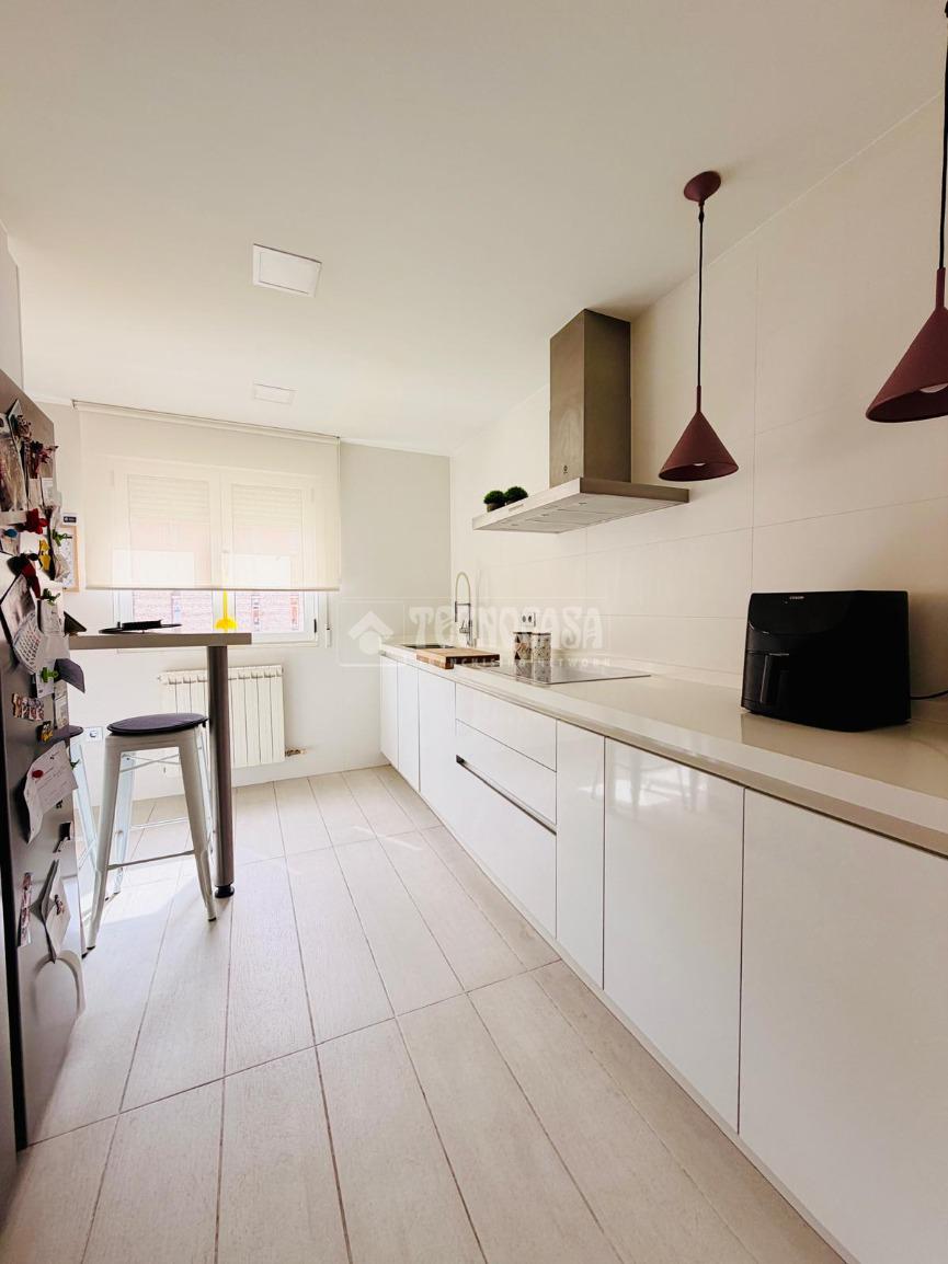 Vivienda totalmente independiente dispone de 111 metros cuadrados distribuidos en salón exterior con vistas a la iglesia de San Miguel, cocina con salida a una galería cubierta, dos cuartos de baño completos y tres dormitorios completamente independientes.